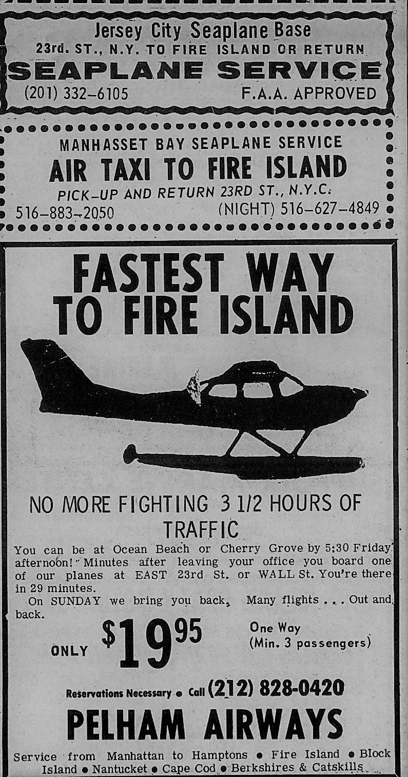 One of the fastest and most glamorous ways to get to Fire Island was and still is the Seaplane. Becoming more popular and visible in the 1960’s through today it was the only way to arrive. For celebrities it was not only fast, but indiscreet. Slightly soggy, but glamorous just the same. With the advent of the dock you could really arrive in style…